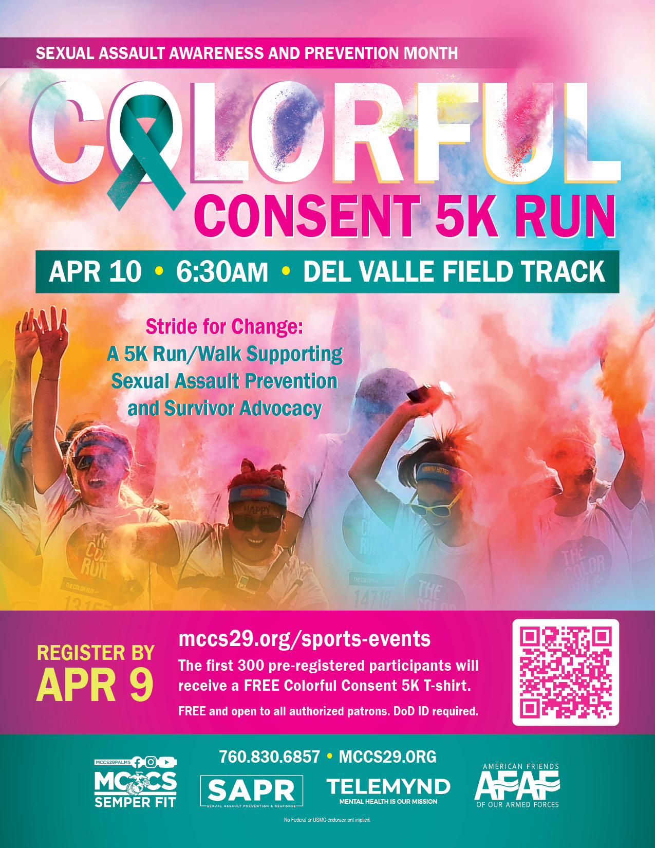 The first 300 pre-registered participants will receive a FREE Colorful Consent 5K T-shirt.