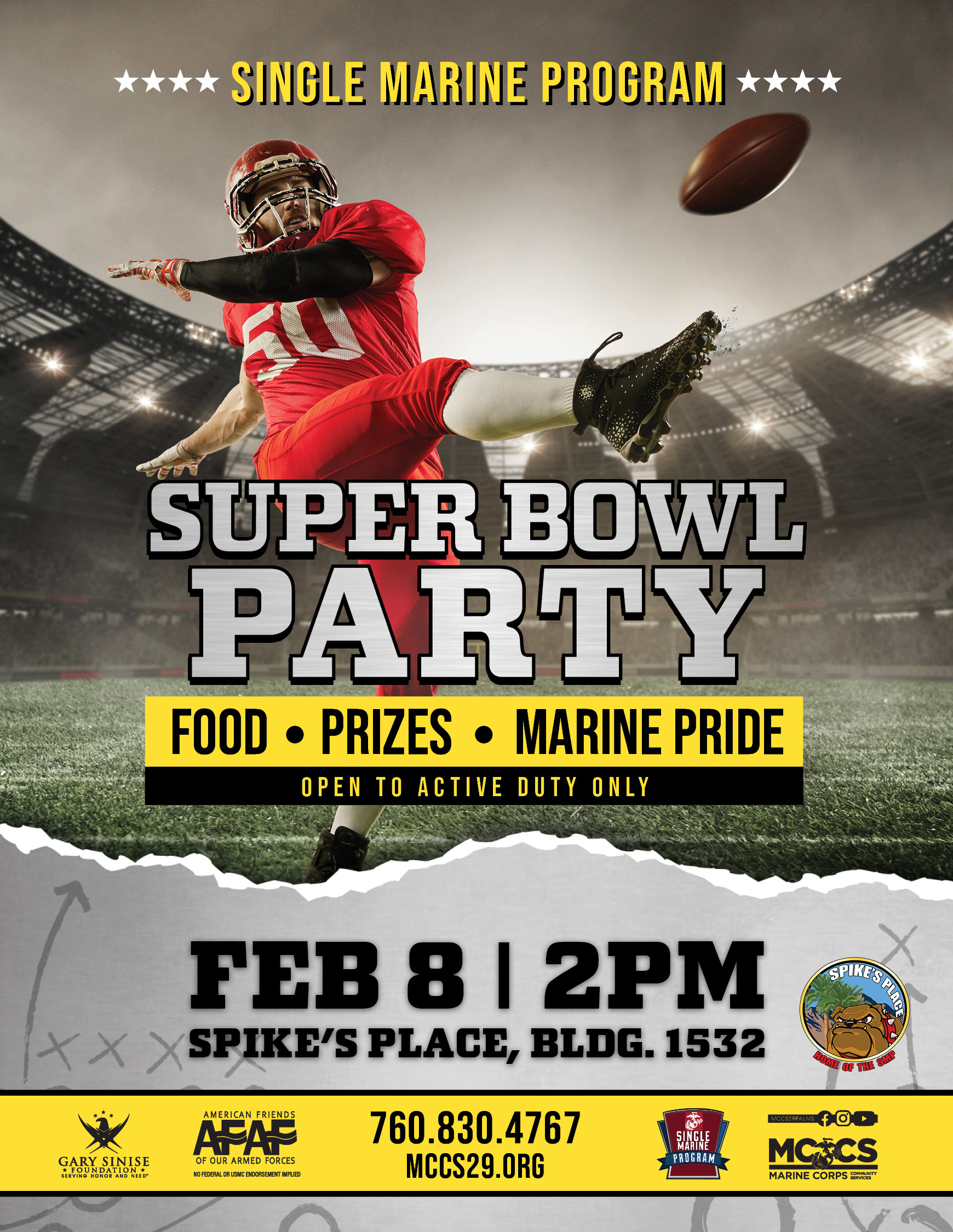 Don't miss the ultimate Super Bowl experience with food, prizes and Marine pride!